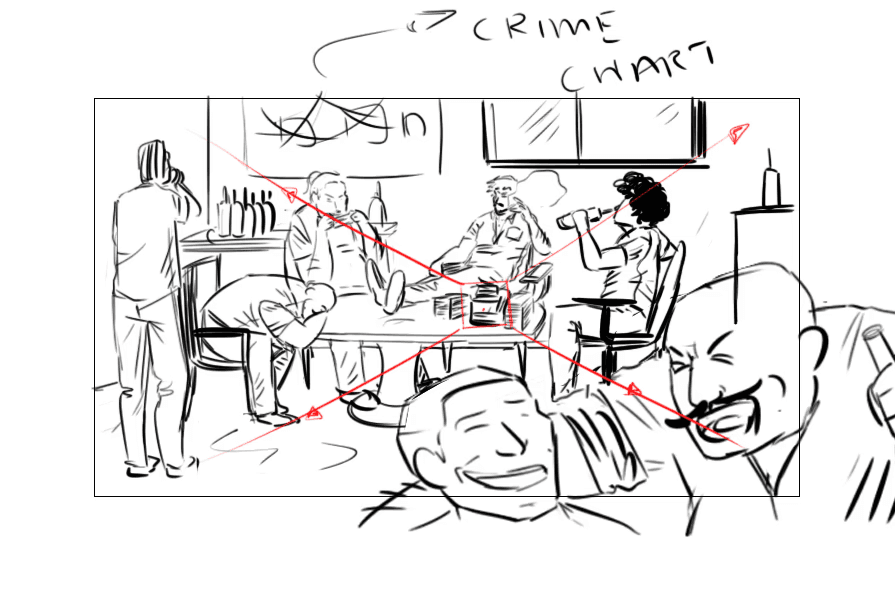 The beatboard acted as a foundation for defining the visual tone and atmosphere of the project. Rather than just illustrating a single moment, it was designed to capture the essence of the story’s world, the gang’s dynamic, their environment, and the tension that binds them together.