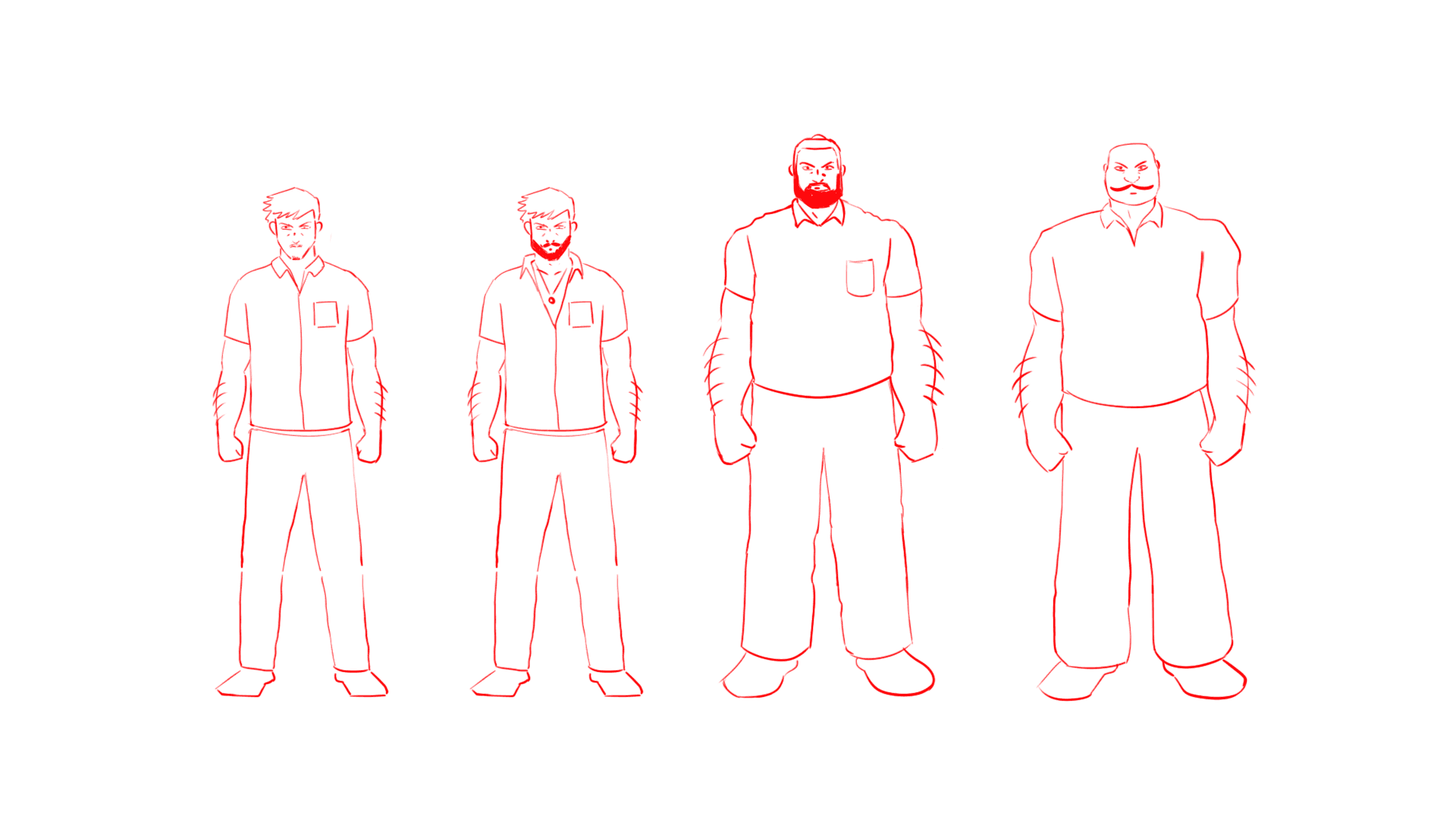 Each member was designed to embody a distinct persona, contributing to the group’s dynamic as a whole. Their silhouettes, gestures, and clothing were carefully developed to reflect their hierarchy, chemistry, and shared defiance. These designs were then distilled into shorthand versions, crafted specifically for the animatic to allow smooth motion and fluid transitions without compromising on individual identity or visual impact.