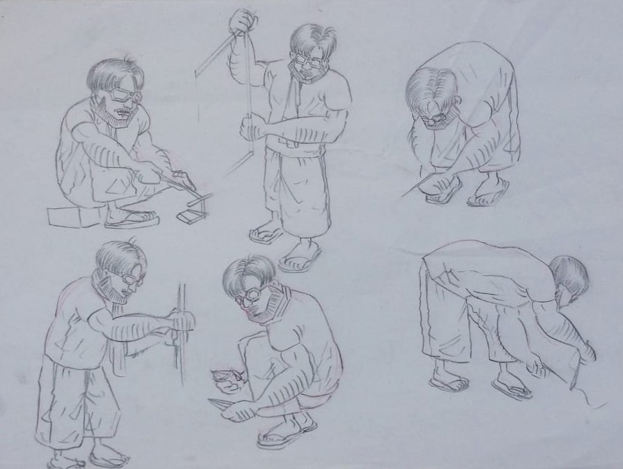 Through close observation and documentation, I explored his physiological, sociological, and psychological aspects, from his physical traits shaped by years of labor, to his daily interactions, habits, and aspirations. These insights guided the development of a detailed character bible that not only represented him visually but also conveyed his story, identity, and the essence of his world.