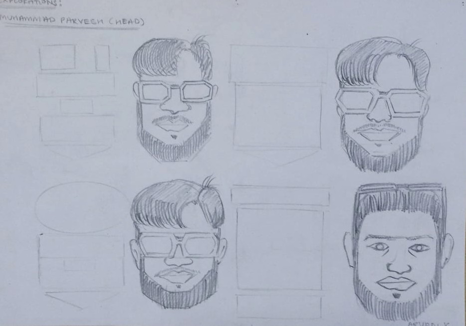 The process began by building silhouettes for both the body and face to establish the overall structure and proportions of the character. From there, I developed multiple variations, exploring form and exaggeration while maintaining a strong resemblance to the real person.